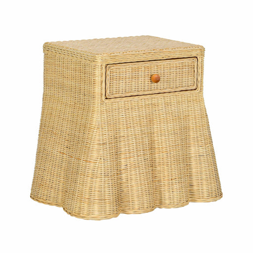 TOV FurnitureThe Pentra Nightstand charms with a handwoven rattan frame, solid wood knob, and a softly skirted base. With a felt-lined drawer and smooth glide r...
