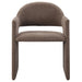 The Astrid Upholstered Barrel Dining Chair effortlessly combines modern sophistication with a hint of eclectic charm. Designed with an open-back silhouette and smooth, sweeping curves, this performance velvet dining chair adds a contemporary flair that fits beautifully in various settings. The upholstered chair�s padded foam cushion and stain-resistant performance velvet fabric ensure both style and comfort, making it an ideal choice for dining rooms, vanities, or as an accent chair in living spaces. Arriving fully assembled and equipped with non-marking floor glides, this aesthetic chair with an arch backrest is a versatile and functional addition to any modern or contemporary decor. Weight Capacity: 300 lbs.