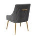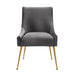 Sit pretty in this sumptuous yet durable velvet chair. The Beatrix dazzles as a dining chair or as an accent piece. Available in several colors with fab gold stainless steel legs and a matching handle on the back. Prop it into any room for a luxe, glamour effect.