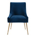 Sit pretty in this sumptuous yet durable velvet chair. The Beatrix dazzles as a dining chair or as an accent piece. Available in several colors with fab gold stainless steel legs and a matching handle on the back. Prop it into any room for a luxe, glamour effect.