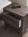 At the intersection of industrial cool and chic sophistication, you’ll find this nightstand. With a rich brown finish over replicated walnut wood grain, paired with a burnished goldtone handle, it offers an authentic touch that plays well any way you style it. Simple and elegant in its design, this piece keeps your home decor grounded while elevating your modern style.
