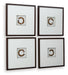 Details Set of 4, Dark brown shadowbox frame, Glass front with double mat, Hand painted embellishments, D-ring bracket for hanging, Due to the hand crafted nature of this product, some variations may occur