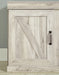 Express your modern farmhouse style with this entertainment center. Its wispy white finish over replicated oak grain is a delightful change from the ordinary. Clean-lined, classic styling with barn door inspiration provides a country-chic aesthetic that’s a breath of fresh air.
