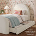 The Moon Bed just got a fresh twist with our new Chambray Blue Chenille, a textured hue that brings soft structure and seaside calm. Available as a twin or trundle and offered in cream boucle, rose upcycled chenille, or chambray blue, this Art Deco-inspired silhouette adds charm, function, and a little magic to any bedroom.