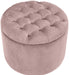 Make storage glam. Beauty is taken to new heights with the storage ottoman. Whether you use it as a foot stool or side table the elegant tufting and rich velvet will make you feel like a royal. So put your things away and look stylish while doing it. Available in multiple sumptuous velvet color options.