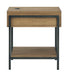 Details Made with oak veneer and engineered wood, Light, natural finish, Metal frame with black finish, Open storage cubby, Lower shelf, 110V power supply with dual USB charging port, Power cord included; UL Listed, Assembly required