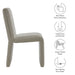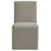 Reimagine your dining or living space with the Emory Slipper Dining Chair, a sophisticated blend of modern design and comfort. Covered in textured slub weave fabric, this upholstered dining chair exudes charm with its uniquely folded silhouette that wraps around the seat, creating an elegant, seamless flow from the backrest to the base. Dense foam padding adds plush comfort, while the armless dining chair design lends an airy, minimalist aesthetic perfect for contemporary settings. Supported by a sturdy frame, this upholstered side chair is completed with non-marking floor glides to protect your surfaces. Arriving fully assembled, Emory is a refined, hassle-free addition as a dining chair around a kitchen table, vanity chair, or accent chair in a living room. Weight Capacity: 300 lbs.