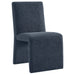 Reimagine your dining or living space with the Emory Slipper Dining Chair, a sophisticated blend of modern design and comfort. Covered in textured slub weave fabric, this upholstered dining chair exudes charm with its uniquely folded silhouette that wraps around the seat, creating an elegant, seamless flow from the backrest to the base. Dense foam padding adds plush comfort, while the armless dining chair design lends an airy, minimalist aesthetic perfect for contemporary settings. Supported by a sturdy frame, this upholstered side chair is completed with non-marking floor glides to protect your surfaces. Arriving fully assembled, Emory is a refined, hassle-free addition as a dining chair around a kitchen table, vanity chair, or accent chair in a living room. Weight Capacity: 300 lbs.
