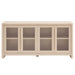 The Evren Sideboard Cabinet blends modern farmhouse charm with versatile functionality, making it a refined centerpiece for any space. Crafted with sturdy construction and a beautiful wood grain laminate, this buffet sideboard cabinet features four glass-paneled doors that add an elegant, airy feel while showcasing interior storage. The elongated vertical handles provide a sleek, contemporary touch, complementing the streamlined silhouette. Designed for flexible storage, the adjustable shelves offer ample space for dinnerware, bar essentials, or displaying your favorite items, while cable management holes with covers ensure effortless organization of electronics when used as an entertainment console. Soft-close hinges allow for smooth operation, and non-marking floor glides protect surfaces from scratches. Perfect for use as a dining room buffet, liquor cabinet bar for home, TV stand, or hallway storage cabinet, the Evren Sideboard is a sophisticated and practical addition to any living space. Assembly required.