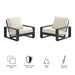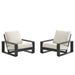 Unwind in sculptural sophistication with the Lirienne Outdoor Patio Armchair Set. Designed for modern relaxation, these two matching outdoor chairs showcase sleek, rectangular frames crafted from durable powder-coated aluminum, offering both resilience and style. The deep, angled seats and plush foam cushions invite you to sink into comfort, while the fabric upholstery is stain-resistant, weather-resistant, and easy to maintain with removable, washable covers. Perfect for lounging on a sun-drenched deck, cozy balcony, or shaded patio, this set of two aluminum patio chairs brings an air of refined ease to any alfresco setting. Weight Capacity (each): 300 lbs.