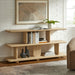 A striking balance of form and function, the Lyle Sculptural Bookshelf brings contemporary intrigue to your home. This low-profile, two-tier bookcase features a bold, sculptural design with clean lines, smooth bullnose edges, and an organic aesthetic. Crafted with a wood grain veneer finish, the stacked construction on this open-frame display shelf creates a visually dynamic look that effortlessly showcases books, d�cor, and collectibles. The rounded corners soften the structure, while wide, tiered shelves on this modern shelving unit offer ample storage without overwhelming your space. Resting on subtly rounded bun feet with non-marking floor glides, this low bookshelf is a perfect fit for living rooms, home offices, or bedrooms�whether styled as a book shelf for a reading nook, a display case for collectibles, or a 2 tier bookcase beneath a window. Weight Capacity: 137 lbs.