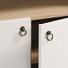 The Nolan Display Cabinet combines functional storage versatility with charming modern farmhouse style. Crafted with a beautiful wood grain laminate, the chic design flaunts subtle edge trimming and an elegantly rounded, arched top shelf. Supported by tapered wood legs, the Nolan tall storage cabinet combines open shelving with concealed storage. The upper section includes two adjustable shelves flanked between two fixed shelves, perfect for displaying decor and books. The lower section is enclosed by two solid doors, which open to reveal two adjustable shelves inside, creating four compartments for additional storage. Complete with soft-close hinges and metal ring pull handles with a brushed gold finish, this wood storage cabinet is as stylish as it is practical. Perfect for your living room, hallway, or dining area, this arched bookcase effortlessly adds an air of sophistication and vintage allure to your home. To protect your flooring, the Nolan Wide Storage Cabinet comes equipped with non-marking foot pads. Assembly required. Weight Capacity of each shelf: 44 lbs