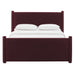 Elevate a primary bedroom or guest room with the modern elegance of the Rael Queen Platform Bed Frame. Upholstered in soft, stain-resistant performance velvet, this queen velvet bed frame features a padded headboard and footboard for a plush, inviting feel. The bed is framed by rounded, upholstered vertical posts that accentuate the velvet headboard, adding a touch of unique style and dimension. Creating a cohesive, luxurious look, the bed frame with pillars offers both style and function. The Rael queen upholstered platform bed includes a sturdy wood slat support system, providing a durable, well-ventilated foundation for your mattress and eliminating the need for a box spring. Whether in a primary bedroom or a guest room, the Rael queen size upholstered bed frame delivers a sleek and sophisticated upgrade to your decor. Assembly required. Weight Capacity: 800 lbs.