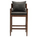 Blending modern elegance with modern comfort, the Remington Bar Stool offers a refined seating experience at your bar or high-top table. This 29-inch bar height stool features a solid elm wood frame with a rich finish, showcasing clean lines, an open back, and integrated armrests. A foam-padded seat and removable back pillow are wrapped in textured slub weave fabric for a soft, supportive feel. Tapered legs bring a Scandinavian touch, with a built-in footrest ensure durability and stability. Non-marking foot glides protect floors are included. Whether styled at a home bar, kitchen counter, or high-top dining area, this modern bar height chair enhances any contemporary setting. Weight Capacity: 300 lbs.