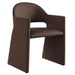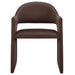The Talia Performance Velvet Dining Chair is a stunning example of modern design, blending clean lines with luxurious comfort. Whether as a stylish living room accent chair, a statement piece in the dining area, or even a chic office accent chair, the Talia Barrel Back Dining Chair offers both timeless style and versatility. Built on a sturdy bentwood frame, this dining chair with arms is fully upholstered in soft, stain-resistant performance velvet for a premium feel. Its elegantly curved backrest flows seamlessly into wide, angular armrests that extend down to the floor, creating a sculptural look that's perfect for minimalist and contemporary spaces. The open-back design of this curved dining chair provides a light and airy feel, while the generously padded seat ensures lasting comfort. Completing the design, floor-protecting foot pins are included to prevent scratches, making it easy to move and enjoy without worry. The Talia Velvet Armchair arrives fully assembled, ready to elevate your space. Weight Capacity: 300 lbs.