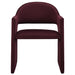The Talia Upholstered Dining Chair is a stunning example of modern design, blending clean lines with luxurious comfort. Whether as a stylish living room accent chair, a statement piece in the dining area, or even a chic office accent chair, the Talia Barrel Back Dining Chair offers both timeless style and versatility. Built on a sturdy bentwood frame, this dining chair with arms is fully upholstered in soft slub weave fabric for a premium feel. Its elegantly curved backrest flows seamlessly into angular armrests that extend down to the floor, creating a sculptural look that's perfect for minimalist and contemporary spaces. The open-back design of this curved dining chair provides a light and airy feel, while the generously padded seat ensures lasting comfort. Completing the design, floor-protecting foot pins are included to prevent scratches, making it easy to move and enjoy without worry. The Talia Dining Armchair arrives fully assembled, ready to elevate your space. Weight Capacity: 300 lbs.