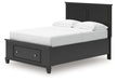 | Details | Includes panel headboard, storage footboard with roll slats and rails , Made with hardwood solids, birch veneer and MDF substrate, Side rails feature laminated solid hardwood slat support rails (or LVL) with glued and screwed blocking for added strength, Black painted finish, Round metal knobs with satin nickel-tone finish, 2 smooth-gliding drawers in footboard, Tapered feet, Bed does not require additional foundation/box spring; accommodates most zero clearance adjustable bases with the addition of a bunkie board, Mattress available, sold separately, Assembly required | |