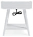 Display your decor with simple style on this accent table. Constructed of wood and engineered wood in a crisp, white finish, this table blends easily with your existing living room aesthetic or stands in as a kid's bedside table. A gallery rail top, undermount shelf and dual USB chargers keep your life (and your look) simply sensational.