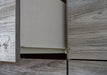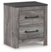Alluring smoky gray hues create an ambiance that just feels right. This nightstand has a charming wood-like appeal enriched by a two-tone, textured look. Light neutral shades contrasted by a dark charcoal finish bring a refined yet relaxed feel to contemporary decor and a sense of serenity to your space.