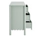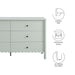 The Emmeline 6-Drawer Dresser blends modern elegance with practical storage, bringing artistic flair to your bedroom or living room. Featuring a signature scalloped edge, this wavy double dresser adds a soft, flowing silhouette to any space. With six spacious full-glide drawers, the dresser offers ample storage for organizing clothing, bedroom essentials, linens, or even media accessories when used as a TV stand for a wall-mounted TV. Crafted with a sturdy frame and finished in smooth laminate, this versatile dresser brings both function and style to your home. The round drawer knobs and non-marking glides enhance its refined appearance while ensuring your floors stay protected. Whether used in a girls' bedroom, a modern living room, or as an organizer in the hallway, the Emmeline 6-Drawer Dresser provides an elegant storage solution. Assembly required.