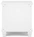 | Details | Made with hardwood solids and MDF substrate, White painted finish, Round metal drawer knobs with satin nickel-tone finish, Tapered feet, Framed drawer fronts, 2 smooth-gliding drawers with dovetail construction and ball-bearing side glides | |