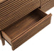 Tap into mid-century aesthetics with the Render 6-Drawer Dresser, a versatile storage piece perfect for organizing any bedroom, living room, or hallway. Featuring six spacious full-extension drawers with slatted drawer fronts, this wide dresser chest offers ample storage space while adding a bold, modern flair. With a wood grain laminate finish, this slatted dresser complements a variety of decor styles, from minimalist to mid-century modern. Render�s drawers glide smoothly on metal runners, ensuring easy access to your belongings, no matter if it's used as a bedroom dresser or hallway console. Perfect as a wide storage unit, this 6-drawer accent cabinet offers both form and function, making it an essential piece for modern living spaces. Assembly required.