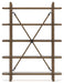 | Details | Frames made with solid wood, Shelves made with hardwood solids, oak veneer and MDF substrate, Brown oak finish, 5 shelves, Back brace set with metal hook and keepers, Assembly required | |